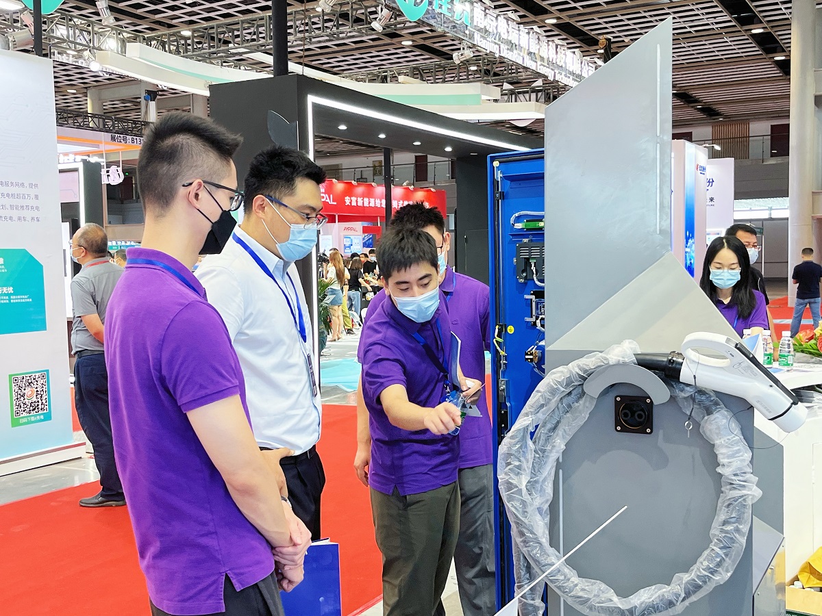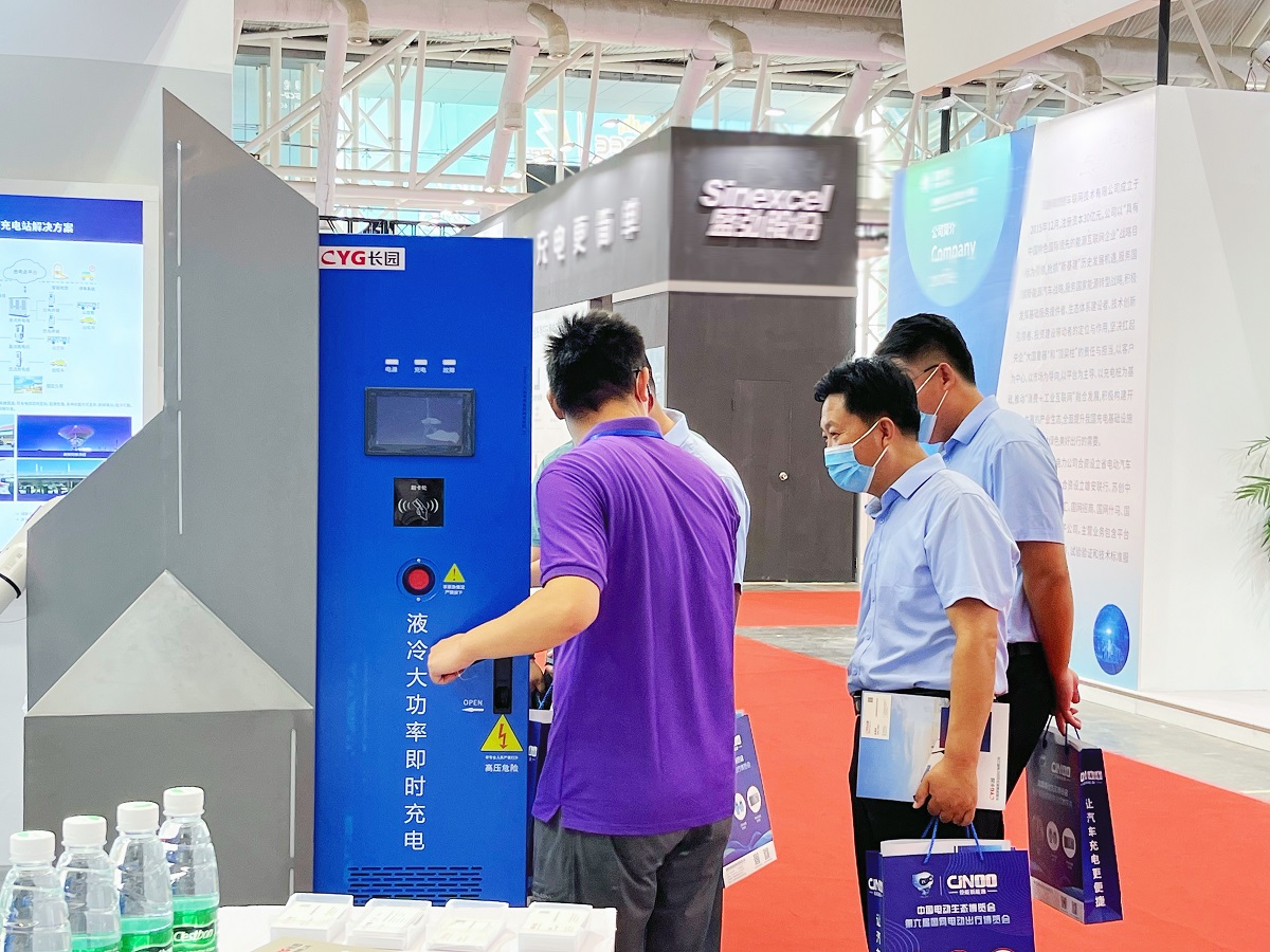 展会现场人头攒动,haobotiyu-好博(集团)深瑞展出的液冷大功率直流充电机、120kW一体式直流充电机、160kW一体式直流充电机及解决方案吸引了众多与会领导和专家的高度关注。